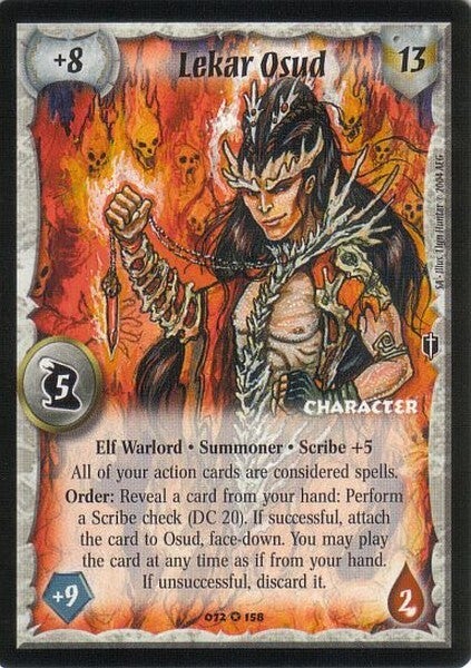 Erratum: -His Order should read "Order: Reveal a card from your hand: Perform a Scribe check (DC 20). If successful, attach the card to Osud, face-down. You may detach and play the card at any time as if from your hand. If unsuccessful, discard it."