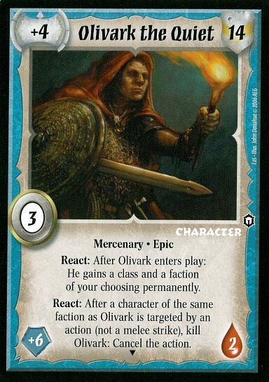 React: After Olivark enters play: He gains a class and a faction of your choosing permanently.