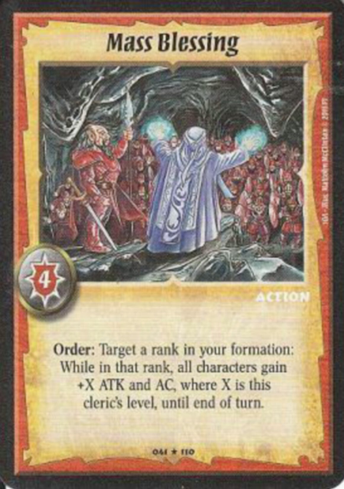 Order: Target one rank in your army. Until the end of the turn, all characters gain ATK and AC bonuses equal to this cleric's level while in that rank.