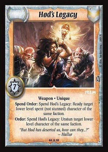 Spend Order: Spend Hod's Legacy: Ready target lower Level spent (not stunned) character of the same faction.