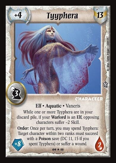 While one or more Tyyphera are in your discard pile, if your Warlord is an Elf, opposing characters have -2 Skill.