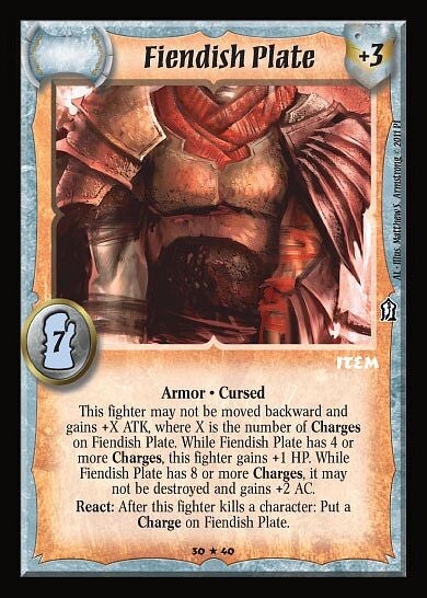 React: After this fighter kills a character: Put a Charge on Fiendish Plate.