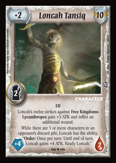 Loncah's melee strikes against Free Kingdoms Lycanthropes gain +3 ATK and inflict an additional wound.