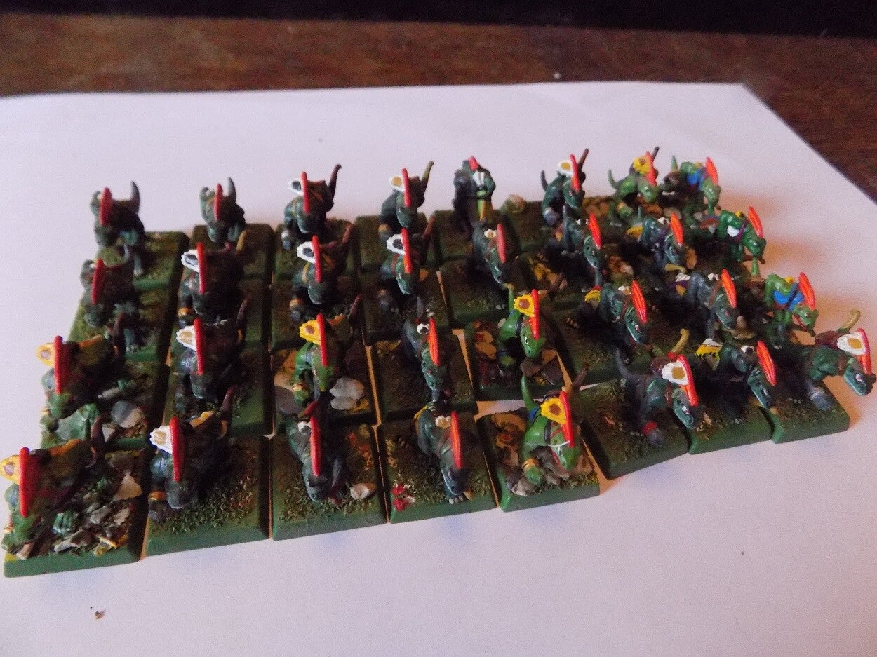 WARHAMMER : (GAMES WORKSHOP) - LIZARDMEN : PLASTIC ARCHERY SKINKS X 32 (PAINTED)