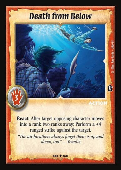 React: After target opposing character moves into a rank two ranks away: Perform a +4 ranged strike against the target.