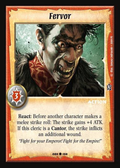 React: Before another character makes a melee strike roll: The strike gains +4 ATK. If this cleric is a Cantor, the strike inflicts an additional wound.