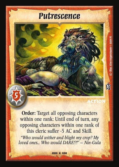 Order: Target all opposing characters within one rank: Until end of turn, any opposing characters within one rank of this cleric suffer -5 AC and Skill.