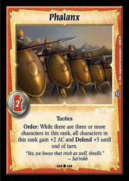 Order: While there are three or more characters in this rank, all characters in this rank gain +2 AC and Defend +5 until end of turn.