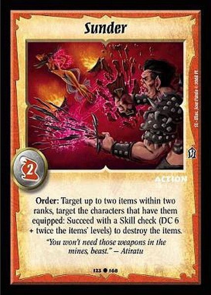 Order: Target up to two items within two ranks, target the characters that have them equipped: Succeed with a skill check (DC 6 + twice the items' Levels) to destroy the items.