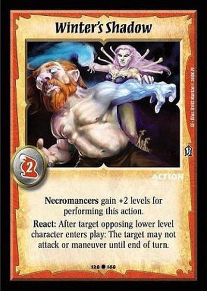 React: After target opposing lower Level character enters play: The target may not attack or maneuver until end of turn.