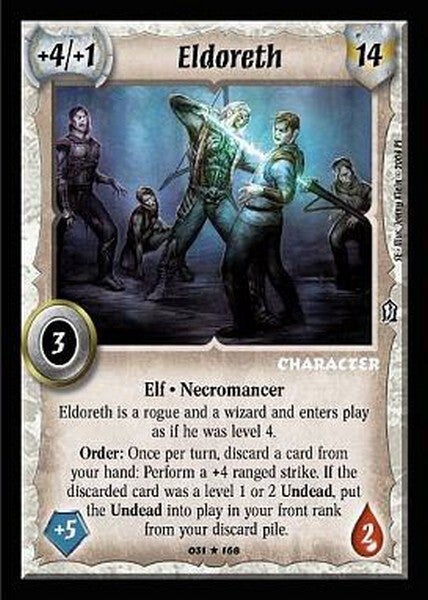Eldoreth is a rogue and a wizard and enters play as if he was Level 4.