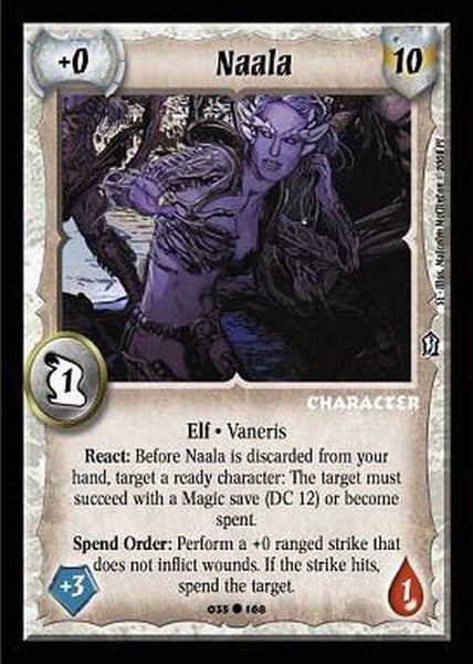React: Before Naala is discarded from your hand, target a ready character: The target must succeed with a Magic save (DC 12) or become spent.