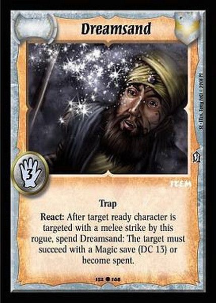 React: After target ready character is targeted with a melee strike by this rogue, spend Dreamsand: The target must succeed with a Magic save (DC 13) or become spent.