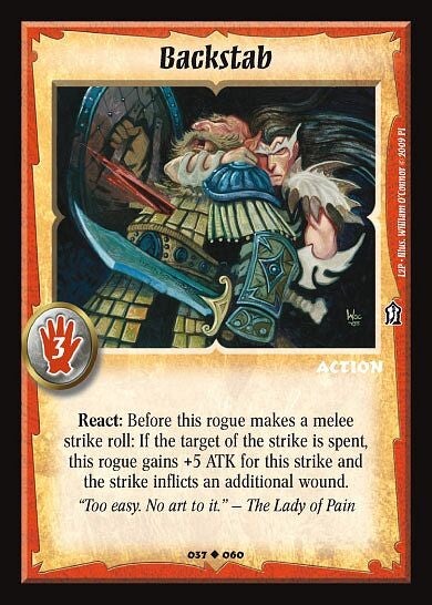 React: Before this rogue makes a melee strike roll: If the target of the strike is spent, this rogue gains +5 ATK for this strike and the strike inflicts an additional wound.