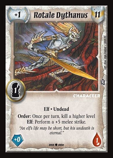 Order: Once per turn, kill a higher Level Elf: Perform a +5 melee strike.