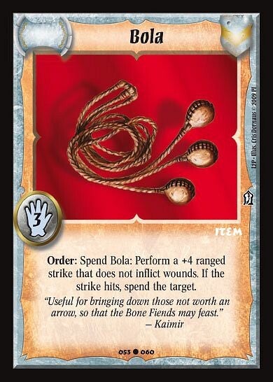 Order: Spend Bola: Perform a +4 ranged strike that does not inflict wounds. If the strike hits, spend the target.