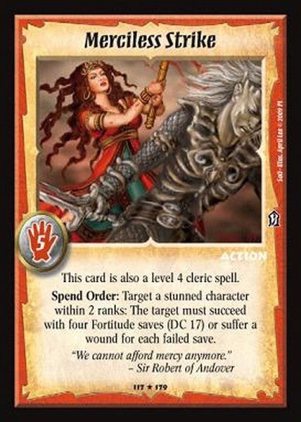 Spend Order: Target a stunned character within 2 ranks: The target must succeed with four fortitude saves (DC 17) or suffer a wound for each failed save.