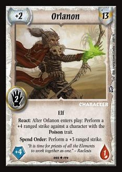 React: After Orlanon enters play: Perform a +4 ranged strike against a character with the Poison trait.