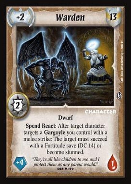 Spend React: After target character targets a Gargoyle you control with a melee strike: The target must succeed with a fortitude save (DC 14) or become stunned.