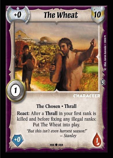 React: After a Thrall in your first rank is killed and before fixing any illegal ranks: Put The Wheat into play.