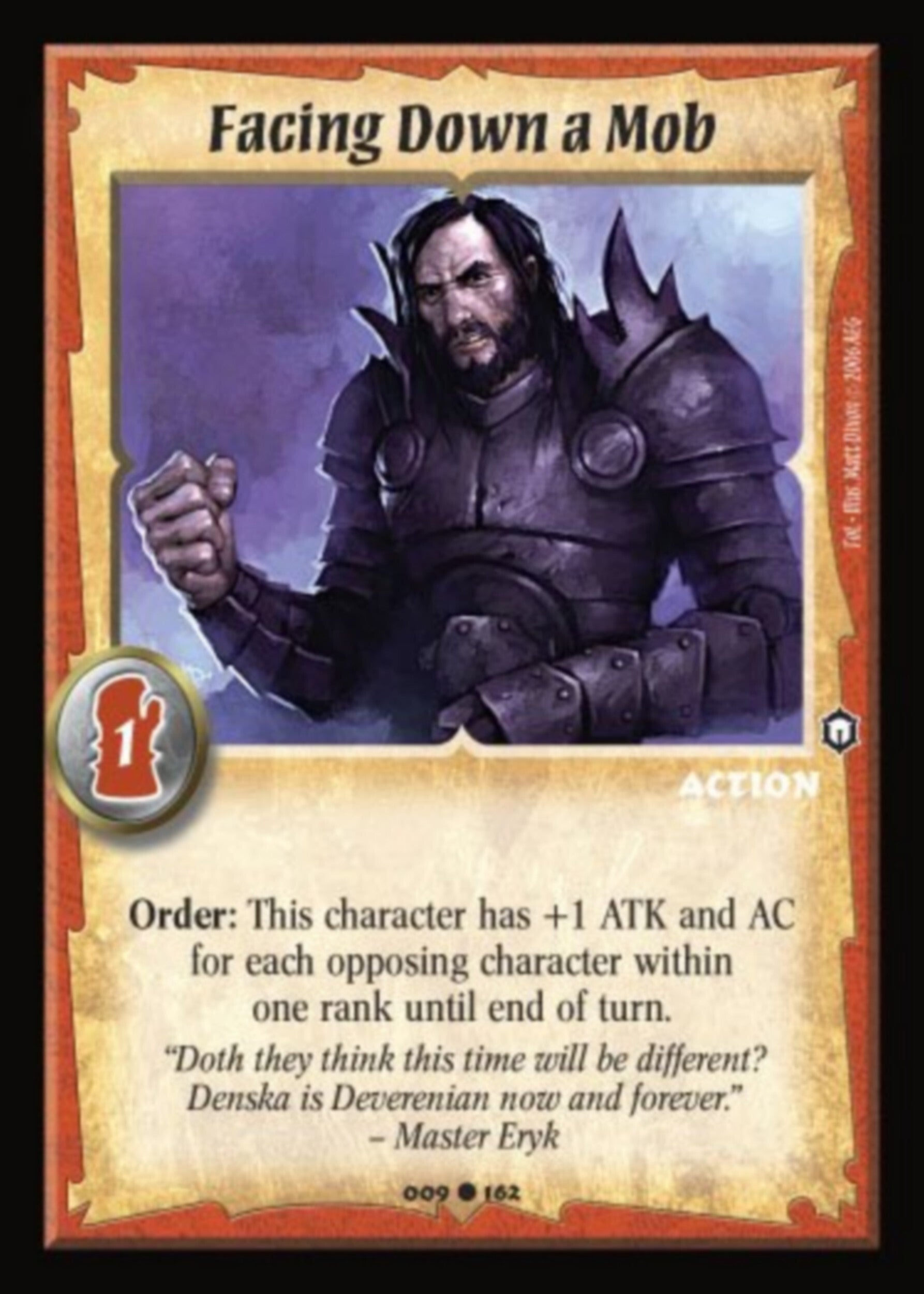 Order: This character is +1 ATK and AC for each opposing character within one rank until end of turn.