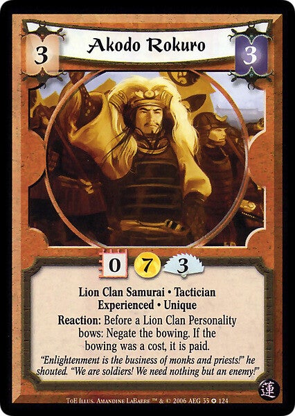 L5R : CLAN : LION : Akodo Rokuro • Exp (Test of Enlightenment (ToE)) - FIXED