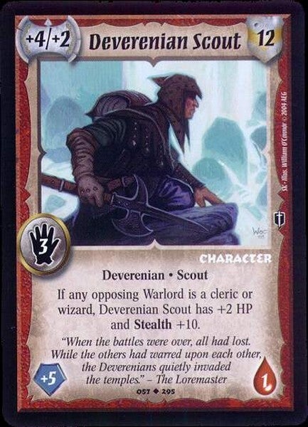 If any opposing Warlord is a cleric or wizard, Deverenian Scout has +2 HP and Stealth +10.