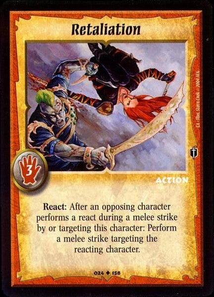 React: After an opposing character performs a React during a melee strike by or targeting this character: Perform a melee strike targeting the reacting character.