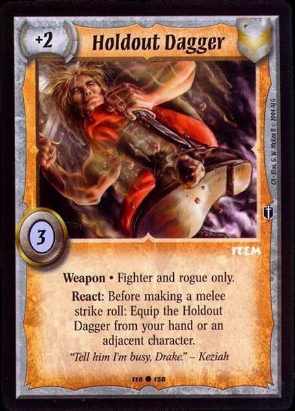 React: Before making a melee strike roll: Equip the Holdout Dagger from your hand or an adjacent character.