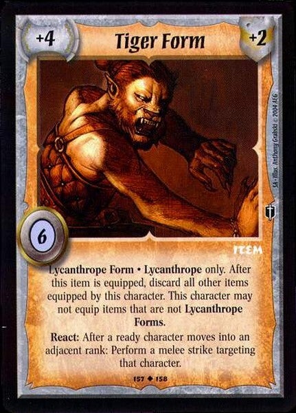 After this items is equipped, discard all other items equipped by this character. This character may not equip items that are not Lycanthrope Forms.