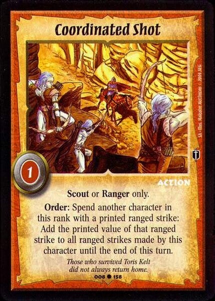 Order: Spend another character in this rank with a printed ranged strike: Add the printed value of that ranged strike to all ranged strikes made by this character until the end of the turn.