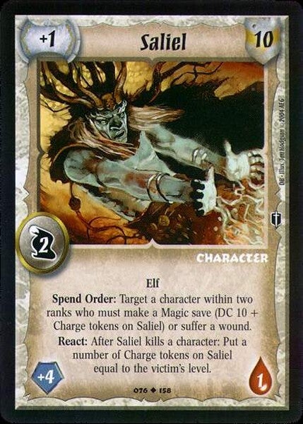 Spend Order: Target character within two ranks must succeed with a magic save (DC 10 + number of Charges on Saliel) or suffer a wound.