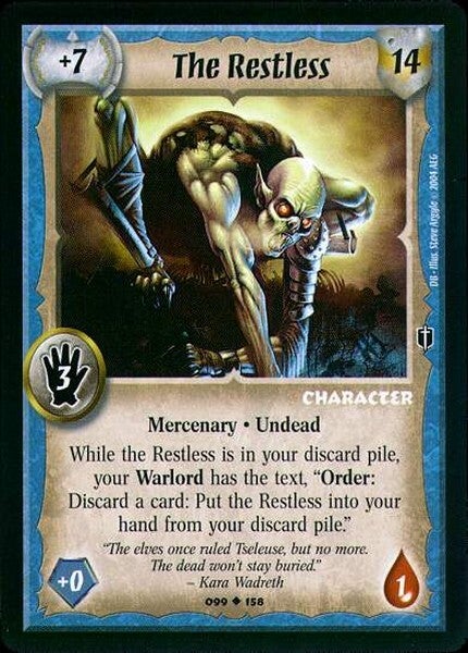 While the Restless is in your discard pile, your Warlord has the text, "Order: Discard a card: Put the Restless into your hand from your discard pile."