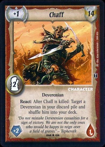 React: After Chaff is killed: Target a Deverenian in your discard pile and shuffle him into your deck.