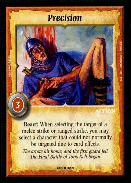 React: Before this character selects the target of a melee strike or ranged strike: You may select a character that could not normally be targeted due to card effects.