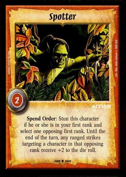 Spend Order: Stun this character if he or she is in your first rank and select one opposing first rank. Until the end of the turn, any ranged strike targeting a character in that opposing rank receive +2 to the die roll.