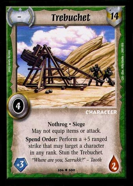 Spend Order: Perform a +5 ranged strike that may target a character in any rank. Stun the Trebuchet.
