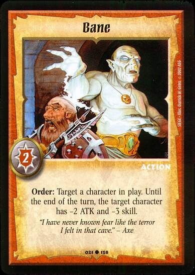Order: Target a character in play. Until the end of the turn, the target character has -2 ATK and -3 skill.