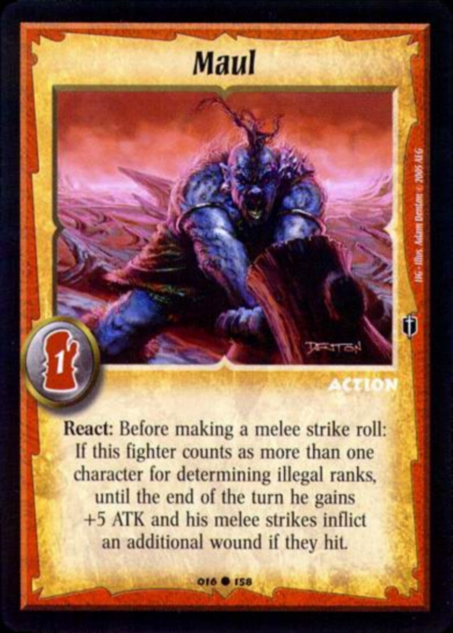 React: Before making a melee strike roll: If this fighter counts as more than one character for determining illegal ranks, until the end of turn, he gains +5 ATK and his melee strikes inflict an additional wound if they hit.