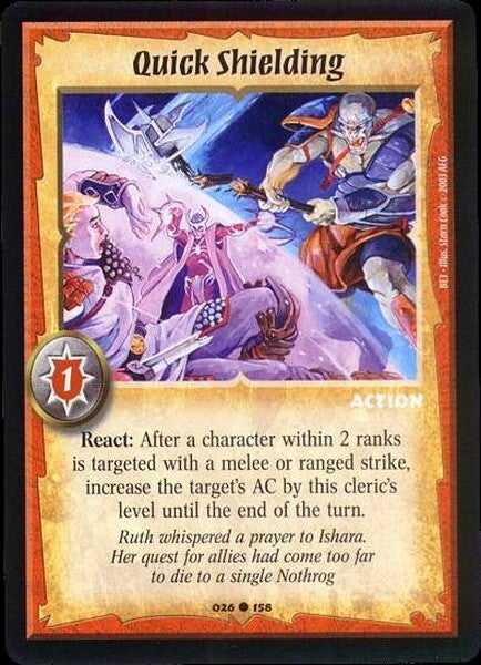React: After target character within two ranks is targeted with a strike: The target gains a bonus to AC equal to this cleric's Level until end of turn.