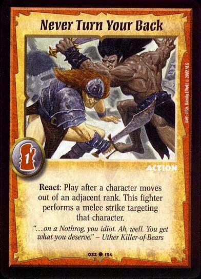 React: Play after a character moves out of an adjacent rank. This fighter performs a melee strike targeting that character.