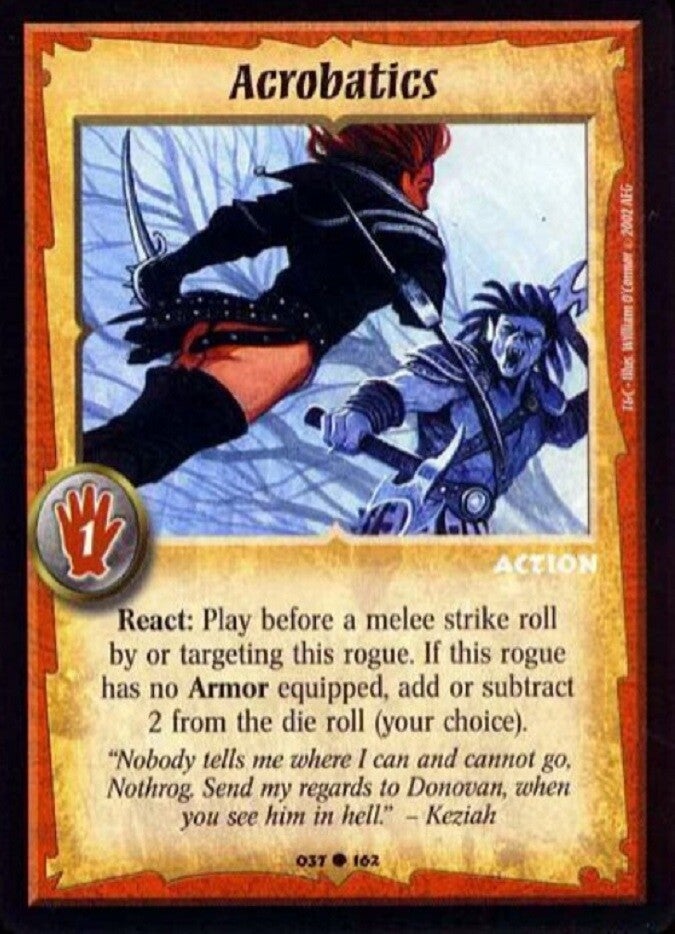 React: Play before a melee strike roll by or targeting this rogue. If this rogue has no armour equipped, add or subtract 2 from the roll (your choice).
