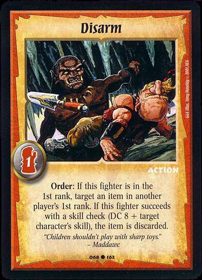 Order: If this fighter is in the 1st rank, target an item in another player's first rank. If this fighter succeeds with a skill check (DC 8 + target character's skill), the item is discarded.