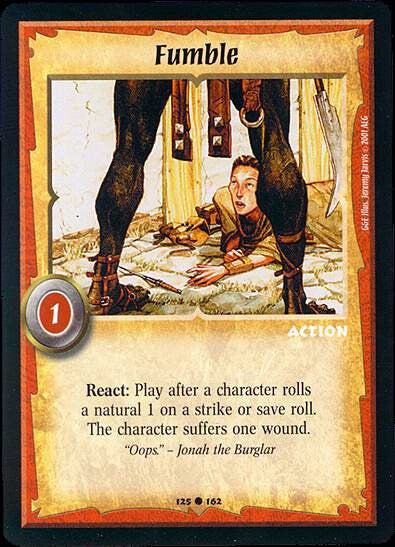 React: Play after a character rolls a natural 1 on a strike or save roll. The character suffers one wound.