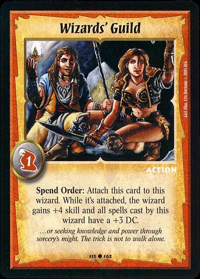 Spend Order: Attach this card to this wizard. While it's attached, the wizard gains +4 skill and all spells cast by this wizard have a +3 DC.