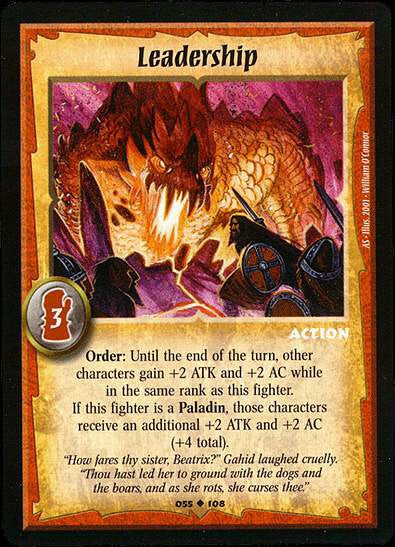 Order: Until the end of the turn, other characters gain +2 ATK and +2 AC while in the same rank as this fighter.