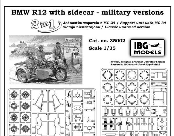 IBG MODELS : REF : IBG35002 : 1:35 : German BMW R12 with Side-Car M.V. 1/35 (Military version)