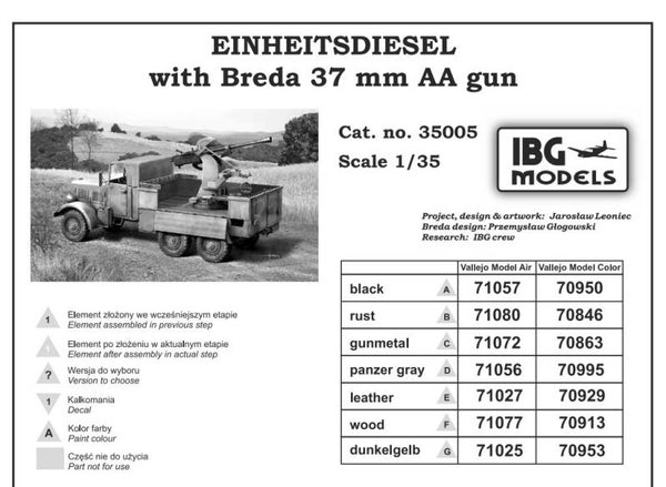 IBG MODELS : REF : IBG35005 : 1:35 : German Einheitsdiesel (Uniform Diesel (UD)) with 3,7 cm Breda