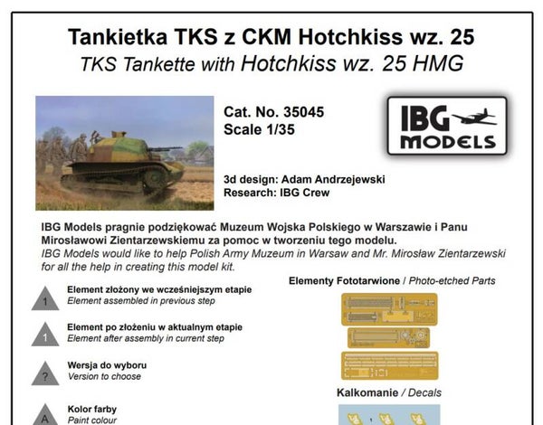 IBG MODELS : REF : IBG35045 : 1:35 : Poland : TKS Tankette with Hotchkiss Machine Gun (Chenillette)