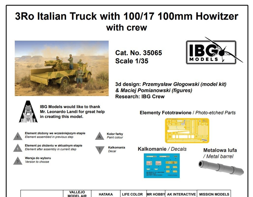 IBG MODELS : REF : IBG35065 : 1:35 : Italy : Lancia : 3Ro Italian Truck with 100mm 100/17 Howitzer with crew (4 figures included)
